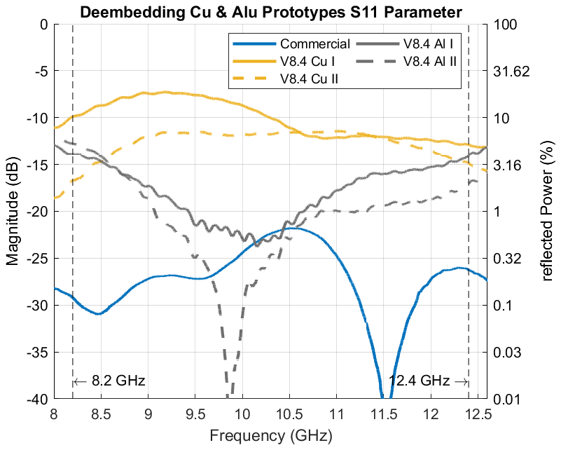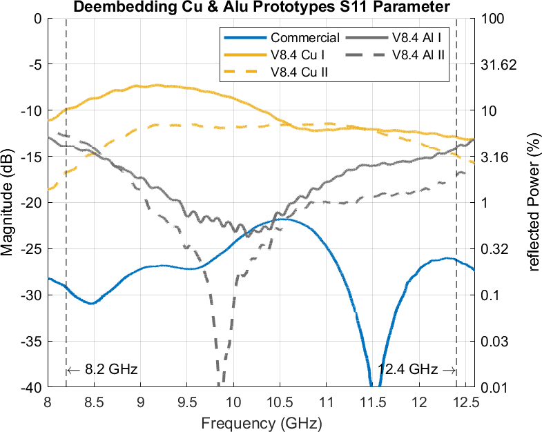 Figure 14Comparison of Cu and Alu Prototypes S11 Parameters.