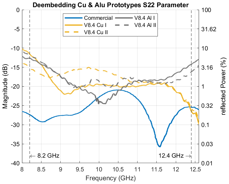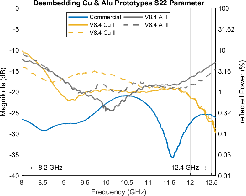 Figure 15Comparison of Cu and Alu Prototypes S22 Parameters.