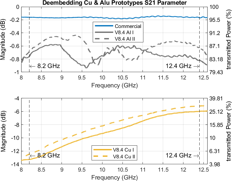 Figure 16Comparison of Cu and Alu Prototypes S21 Parameters.