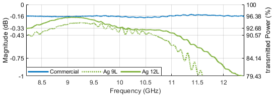 Figure 20Comparison of Commercial and Ag 9, 12 Layers S21 Parameters.