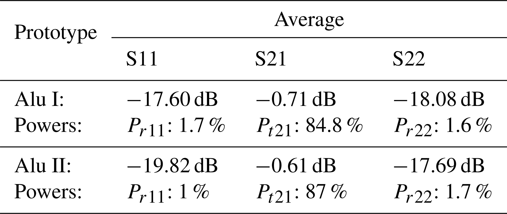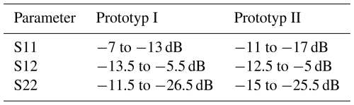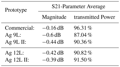 Table 4Average S-Parameters and Performances of the Silver Prototypes.