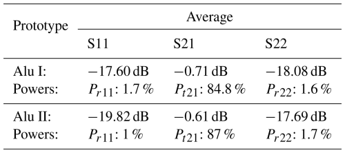 Table 3Average S-parameters and Performances of the Aluminum Prototypes.